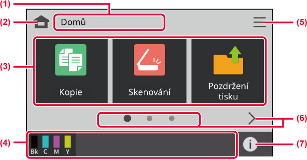 se zobrazí výchozí obrazovka dotykového panelu. Základní okno zobrazí