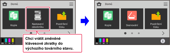 Nastavení jsou uložena v produktu a použita.Tato část vysvětluje, jak vrátit klávesové