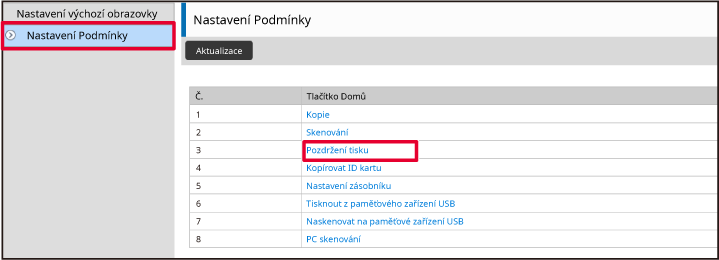Některá nastavení mohou vyžadovat, abyste po kliknutí na [Nastavení výchozí obrazovky] zadali své uživatelské heslo. Pokud jste neprovedli ověření uživatele, musíte zadat heslo administrátora.