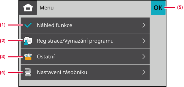 V základním režimu lze nastavit tyto funkce.