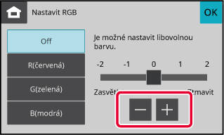 Tato funkce zvyšuje nebo snižuje intenzitu jedné ze tří barevných