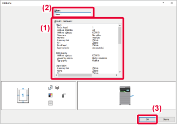 Vysvětlení nastavení viz nápověda k ovladači tiskárny.Pokud je „Oblíbená položka“ při použití