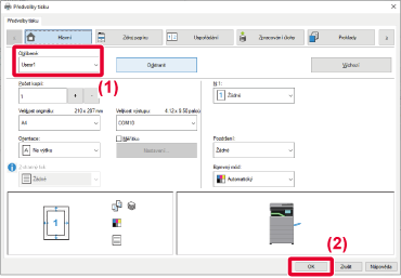 Vyberte ovladač tiskárny pro daný přístroj v okně tisku aplikace a klikněte na tlačítko [Předvolby].