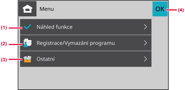 Musíte-li vybrat podrobná nastavení či speciální funkce, použijte