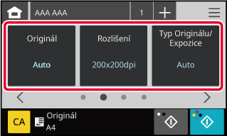 Zadejte velikost skenování originálu, expozici, formát souboru a další položky.