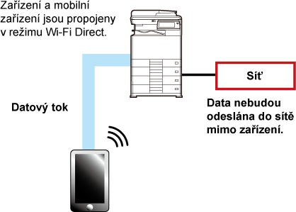 Přístroj a mobilní zařízení přímo komunikují prostřednictvím
