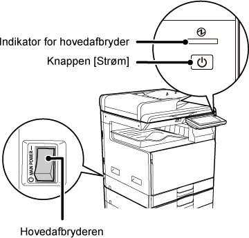 Brug to strømafbrydere: Hovedafbryderen er placeret i maskinens