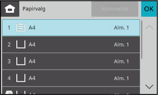 Maskinen er indstillet til automatisk at vælge en skuffe,