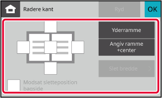 Læg originalen i den automatiske dokumentfeeder eller på glaspladen.Tryk på tasten [Andet], og tryk på tasten [Radere kant].