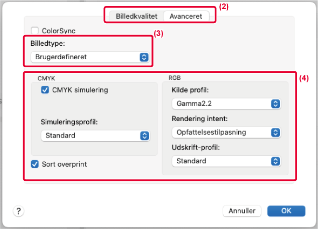 farvestyring, skal du vælge afkrydsningsboksen [ColorSync], så markeringen