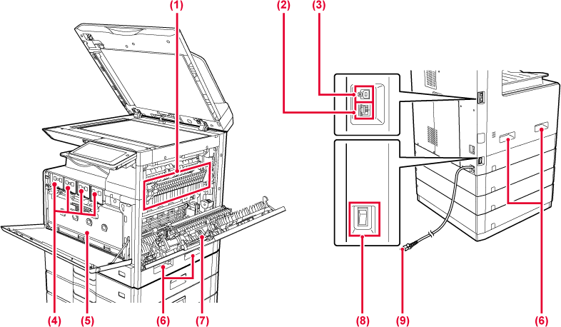 Die Fixiereinheit ist heiß. Vorsicht vor Verbrennungen beim Beseitigen eines Papierstaus.Schließen Sie das