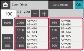Das Verkleinerungs- bzw. Vergrößerungsverhältnis wird anhand der Größe des Originals und des ausgewählten Papierformats automatisch ausgewählt.