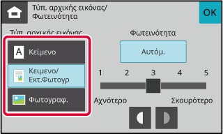 ΛΕΙΤΟΥΡΓΙΑ ΑΝΤΙΓΡΑΦΗΣΠατήστε το πλήκτρο για τον τύπο εικόνας του πρωτοτύπου που επιθυμείτε για να ορίσετε τον τύπο του πρωτοτύπου.