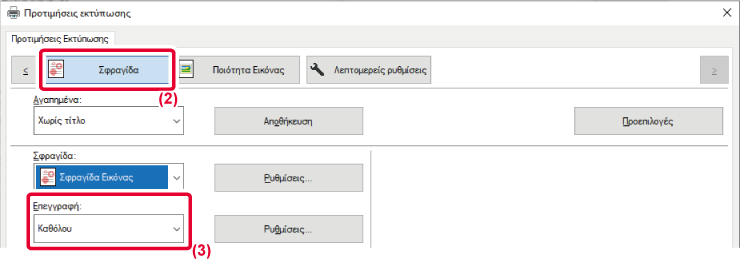 Με αυτήν τη λειτουργία εκτυπώνεται μια συχνά χρησιμοποιούμενη εικόνα ή ένα εικονίδιο που έχετε δημιουργήσει εσείς σαν σφραγίδα επάνω στα δεδομένα εκτύπωσης. Το μέγεθος, η θέση και η γωνία της εικόνας μπορούν να ρυθμιστούν.