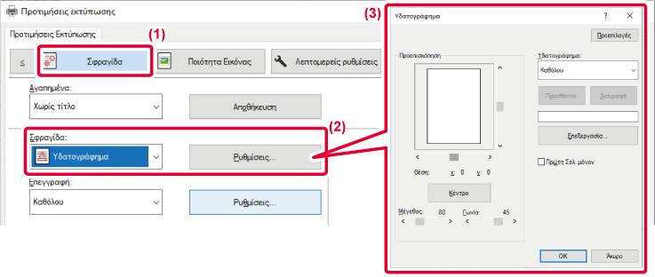 1. Επιλέξτε [Watermarks] από τις "Printer Options".