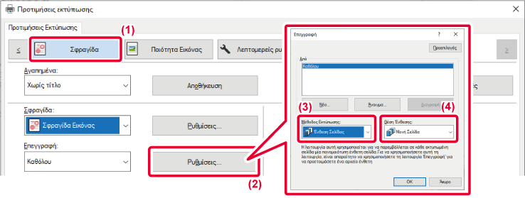 για το εξώφυλλο και καθορίστε τη μέθοδο εκτύπωσης.