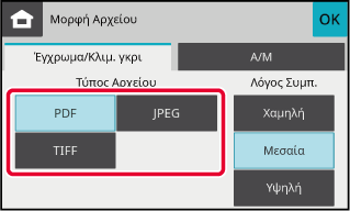 Πατήστε το πλήκτρο [Μορφή Αρχείου].