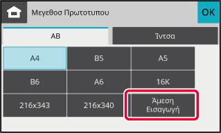 Πατήστε το πλήκτρο του επιθυμητού μεγέθους πρωτοτύπου.