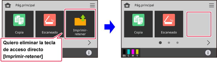 Los ajustes se guardarán en la máquina y se aplicarán.Puede eliminar las teclas de acceso directo