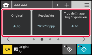 Especifique el tamaño de escaneado original, la exposición, el formato de archivo y otros elementos.