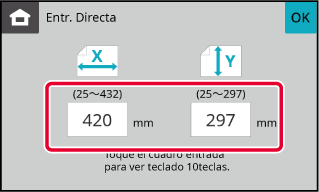 En la pantalla inicial, compruebe que el tamaño especificado se muestra en la tecla [Original].Se consigue un escaneado óptimo seleccionando