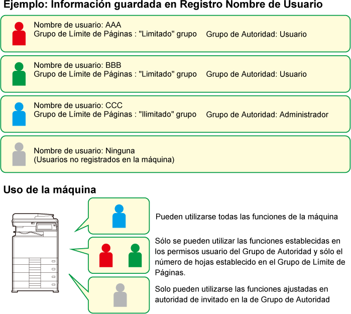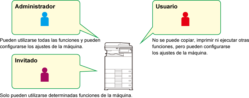 las funciones y los ajustes que pueden utilizar los usuarios pertenecientes