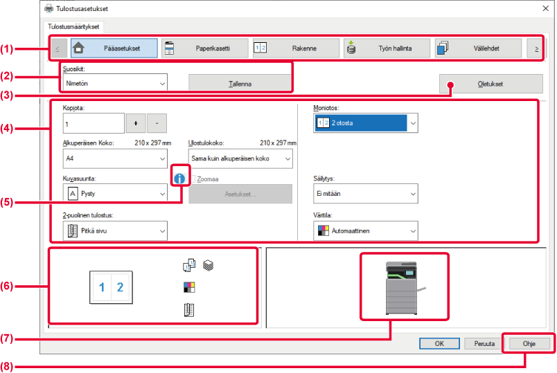 Tulostus alkaa.Tulostinohjaimen asetusnäyttö