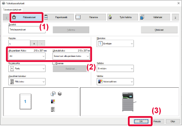 [Sama kuin alkuperäisen koko], "Paperityyppi" on asetettu automaattisesti kohtaan