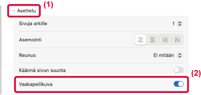 - Aseta parittomien ja parillisten sivujen tulostuskohdan