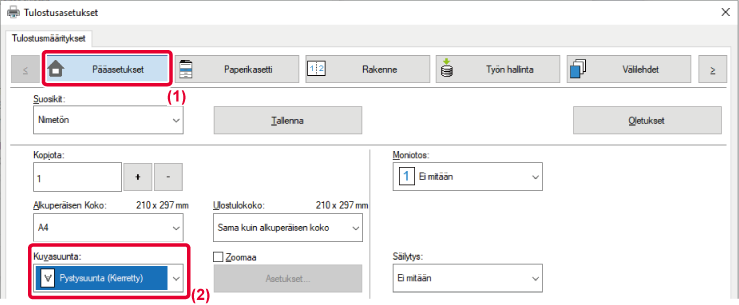 Jos käytät PS-tulostinajuria (Windows), voit asettaa