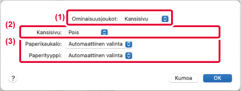 valitse kannelle käytettävä taso ja paperityyppi ja aseta tulostusmenetelmä.