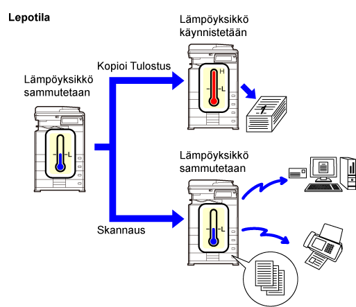 Työt, joita ei tulosteta, suoritetaan lämmitysyksikkö