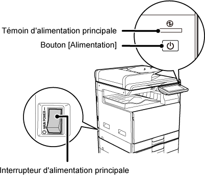 principal est situé sur le côté gauche de la machine et le bouton [Alimentation]