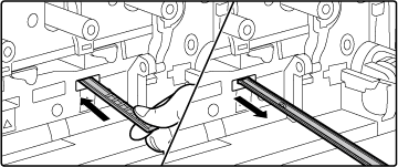 Remettez le dispositif de nettoyage retiré en place sur la cartouche de récupération du toner.Fixez le nouveau dispositif de nettoyage sur l'outil de nettoyage.