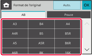 MODE COPIEAppuyez sur la touche du format original approprié.