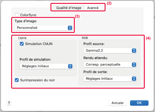 des couleurs de macOS, sélectionnez la case [ColorSync] pour que