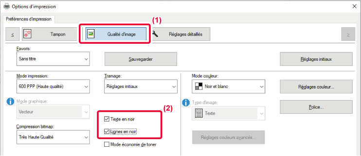 peuvent être imprimés en noir. Cette fonction vous permet de faire