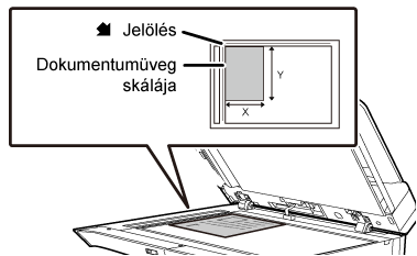 Helyezze el az eredetit nyomtatási oldalával lefelé, és igazítsa az eredeti bal felső sarkát a dokumentumüveg bal oldalához hátul (a