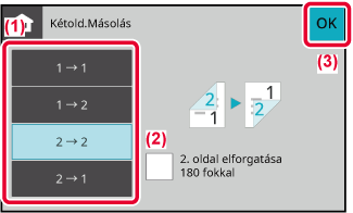 MÁSOLÁSI MÓDVálassza ki a kétoldalas másolási módot.
