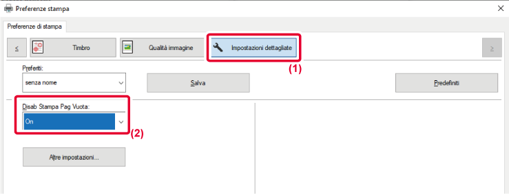 2. Selezionare [On] in [Disab Stampa Pag Vuota].