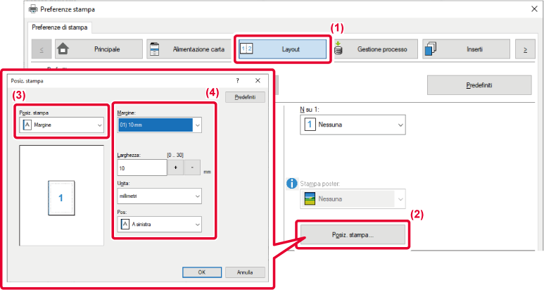 da stampare, al fine di aumentare il margine sinistro, destro o superiore