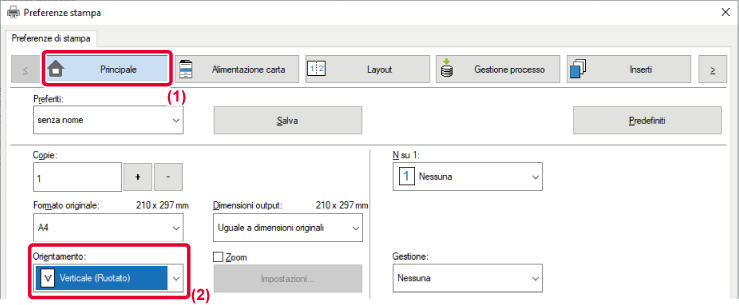 - Selezionare [Verticale (Ruotato)] o [Orizzontale (Ruotato)] in "Orientamento".