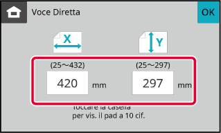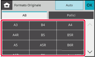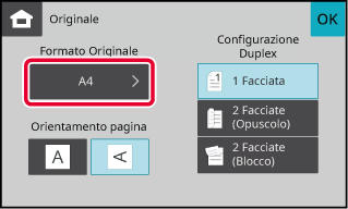 Nella schermata di base verificare che sul tasto [Originale] sia visualizzato il formato specificato.Per garantire una scansione ottimale, è