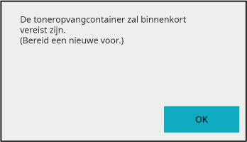 Als de toner inzamelcontainer bijna vol is, verschijnt het