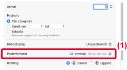 Selecteer het envelopformaat bij de instellingen van