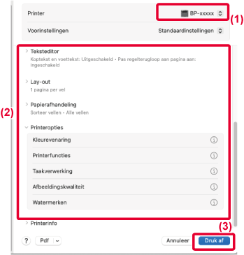 van de printerdriver en de configuratie in een macOS-omgeving.