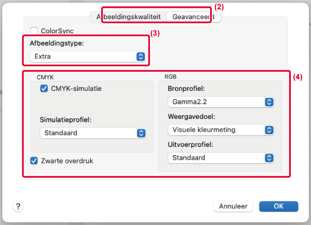 bij Afbeeldingstype, schakelt u het selectievakje [CMYK-simulatie] in