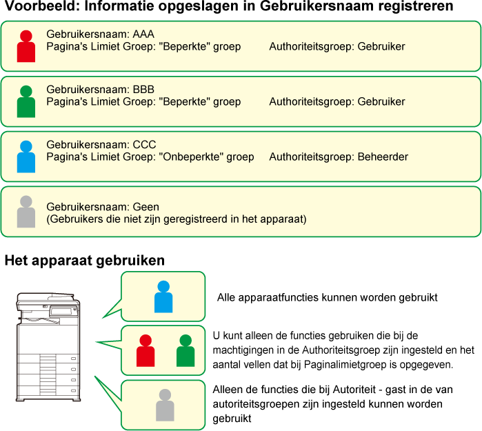 Met Gebruikers- bediening kunt u de gebruikers die het apparaat gebruiken