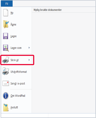 ut et dokument fra "WordPad", som er et standard tilbehørsprogram