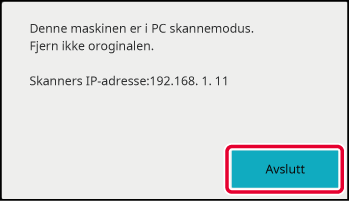 Når PC skannemodus er valg, vil du kun kunne bruke [Avslutt]-tasten på berøringspanelet på maskinen, ingen andre taster kan brukes.